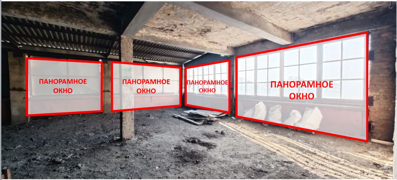 Теперь подробнее: просторное помещение с полностью свободной планировкой (несущие колонны) и возможностью панорамного остекления ВСЕГО ПЕРИМЕТРА.