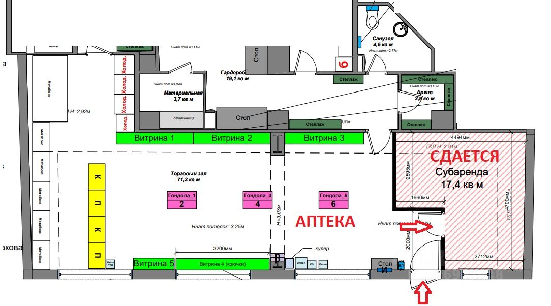 Сдается помещение площадью 17,4 кв.м. в аптеке Здравсити (смотрите план и фото). Стены построим после нахождения арендатора. В арендную плату все включено. Рассмотрим все предложения. Звонки принимаются в рабочие дни с пн-пт с 9.15 до 18.00.