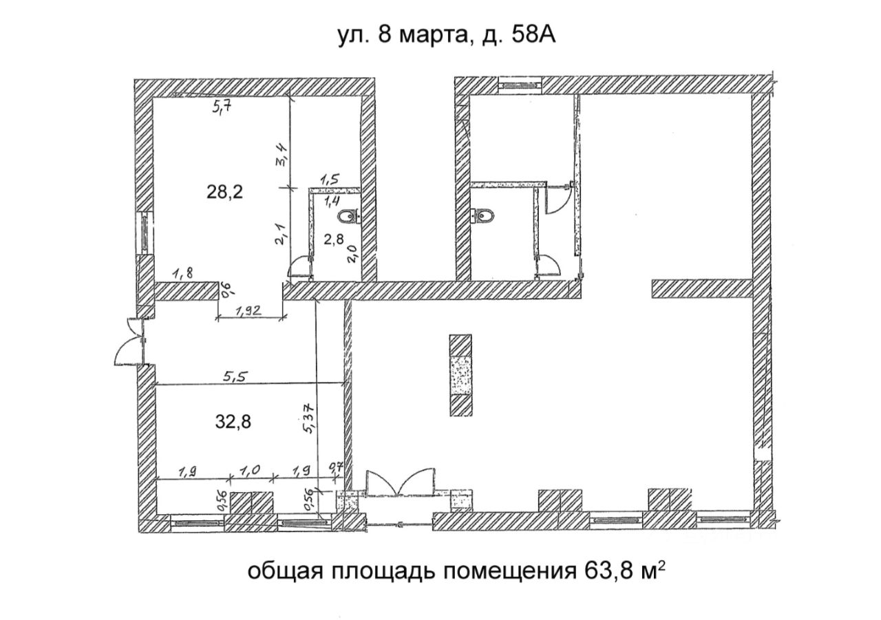 Общая площадь63,8 м²