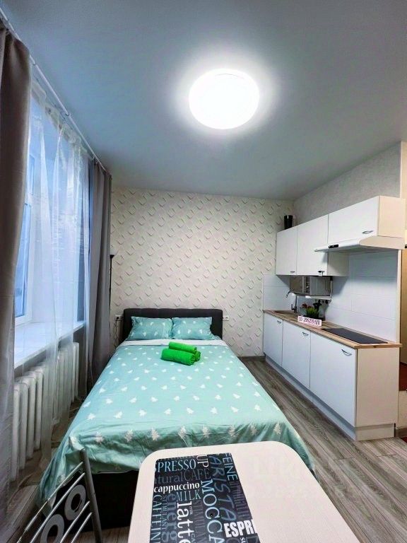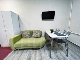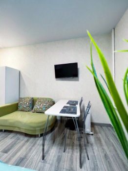 В апартаментах имеется, широкая кровать, полноценная кухня, посуда, все для приготовления еды, чай, сахар, кофе, микроволновка, плазменный телевизор, кабельное телевидение, гели, шампуни, одноразовые тапочки, стиральная машина, холодильник, фен, утюг, гладильная доска. В апартаментах застекленный балкон. Для удобства гостей в доме имеется лифт.