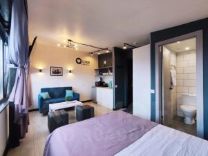 Для комфортного проживания всё самое необходимое есть прямо на территории ЖК: кафе, магазин "Фикс Прайс", детский развлекательный центр, прачечная, салон красоты, магазин цветов, коворкинг, для досуга гостей есть сауна и кальянная. В соседнем здании находится магазин "Пятёрочка".