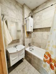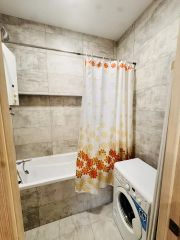 В квартире выполнен стильный дизайнерский ремонт. Она полностью меблирована: в комнатах и на кухне есть вся необходимая мебель. Из техники в квартире есть холодильник и стиральная машина. Ванная комната оборудована ванной, что позволит вам расслабиться после насыщенного дня. После ремонта в квартире никто не жил.
