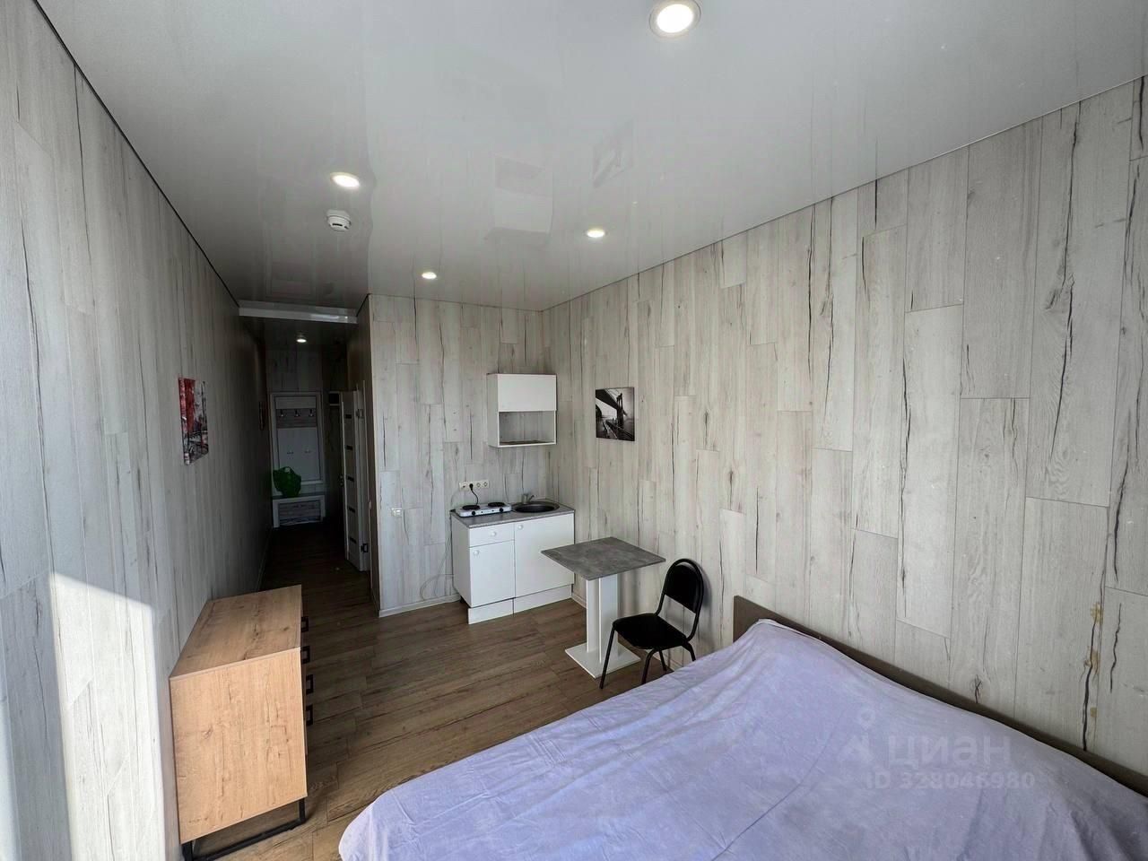 Сдается стильная студия с современным ремонтом в монолитном доме 2018 года постройки. В квартире выполнен евро ремонт, что создает уютную атмосферу. Просторная жилая зона включает в себя удобную кровать, шкафы и рабочий стол.