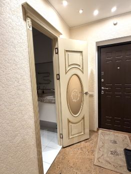 Квартира с евроремонтом, полностью готова для комфортного проживания. В комнате и на кухне есть вся необходимая мебель. Квартира оснащена всей необходимой техникой: кондиционер, холодильник, телевизор и стиральная машина. Санузел совмещенный, оборудован ванной. Из окон открывается вид во двор, поэтому в квартире всегда тихо и спокойно.