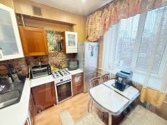Квартира в центре города с высокими потолками и просторной кухней.