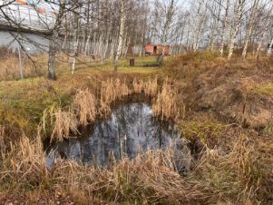 На участке вырыт небольшой пруд , который можно обустроить под свои нужды.