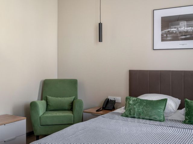 Отель расположен в самом центре города, в шаге от исторического, промышленного и делового центра Электростали. Здесь вас ждут уютные номера с лаконичным дизайном, бесплатным Wi-Fi и всем необходимым для отдыха: круглосуточный кафетерий, закрытая парковка, приватная территория и безупречный сервис. Небольшой формат позволяет создать камерную атмосферу, столь необходимую для командировок, туристических поездок или семейного отдыха. Все 25 номеров отеля оформлены в современном стиле с акцентом на функциональность: мощный Wi-Fi, рабочие зоны с ergo-стульями, мини-холодильники и Smart-телевизоры. Для гостей доступен круглосуточный кафетерий с кофемашиной премиум-класса, где можно быстро перекусить или взять напиток с собой. Уникальное преимущество — приватная территория с видеонаблюдением и автоматическими воротами, что особенно ценно для тех, кто путешествует на авто или приезжает в город по рабочим задачам. Мы фокусируемся на вашем комфорте: поможем организовать трансфер до соседних городов или Москвы, заказать доставку блюд, а при долгосрочном размещении предложим персональные условия. Здесь нет лишней суеты — только практичность, безопасность и забота, чтобы Вы чувствовали себя как дома даже вдали от него. Мы сделаем все, чтобы Ваш визит в Электросталь стал приятным и продуктивным! Этот уютный номер с балконом площадью 25 кв. м предлагает двуспальную кровать для крепкого сна и крупные окна, наполняющие его естественным светом. Здесь есть вместительный стол для работы и кондиционер для комфортного проживания в любое время года. Также вы сможете расслабиться на террасе со столиком и подвесным креслом, создавая идеальную атмосферу для отдыха вдали от суеты.